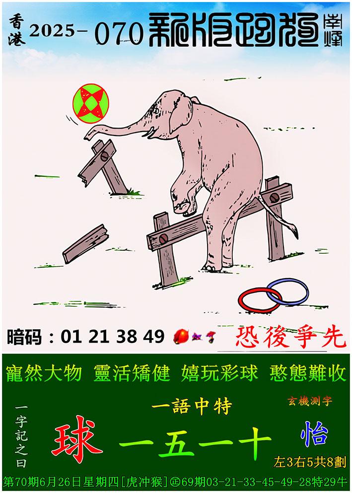 070期新版跑狗一字記之曰:【球】 玄機測字:《怡》 一語中特:一五一十