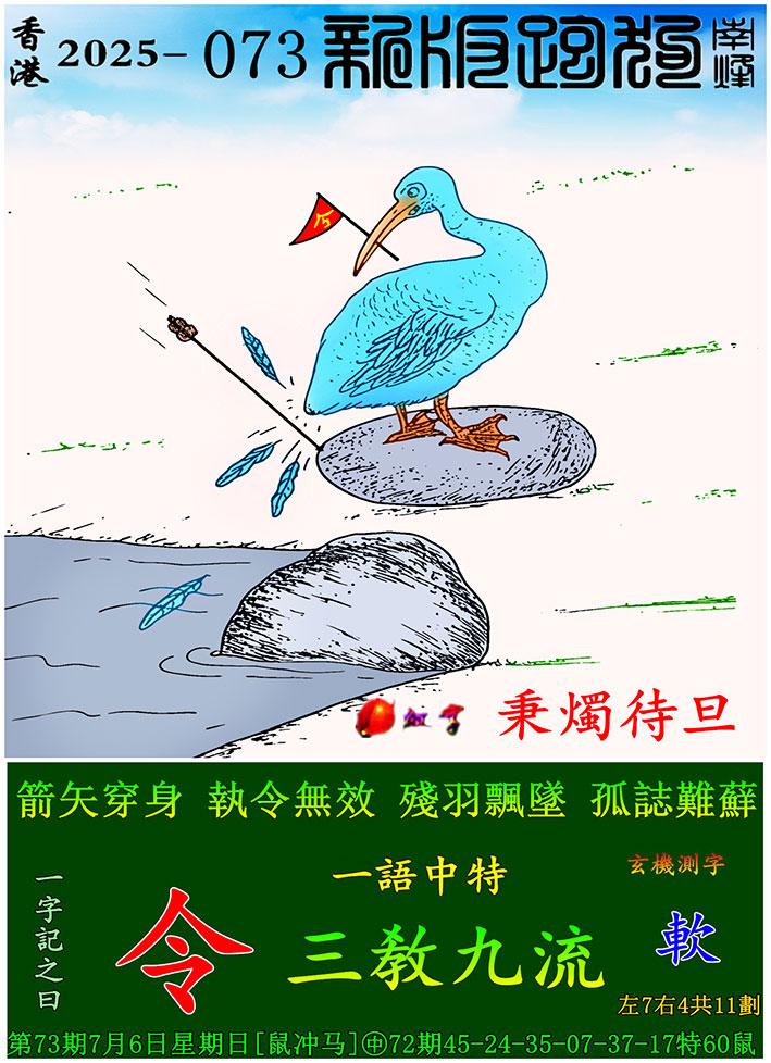 073期新版跑狗一字記之曰:【令】玄機測字:《軟》 一語中特:三敎九流