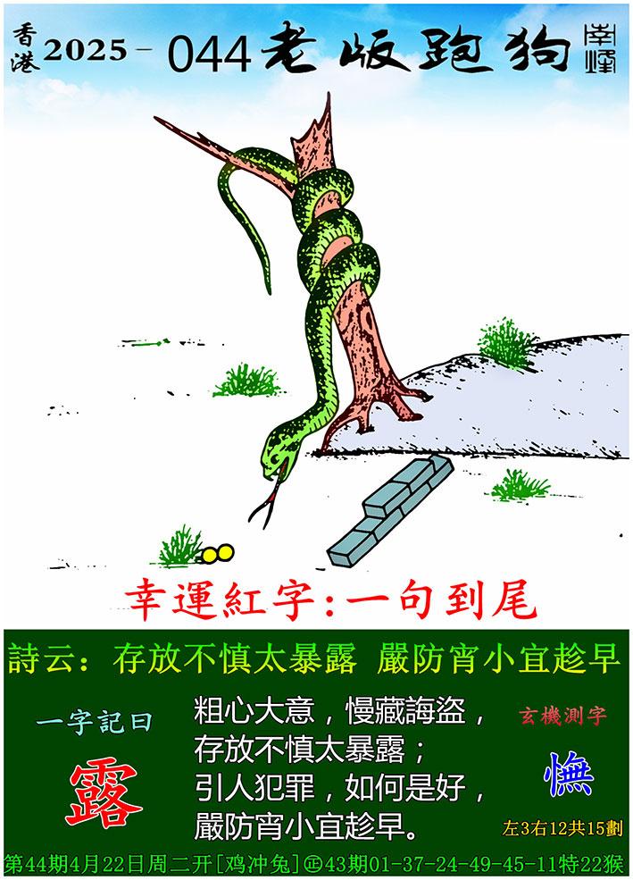 044期老版跑狗一字記之曰:【露】