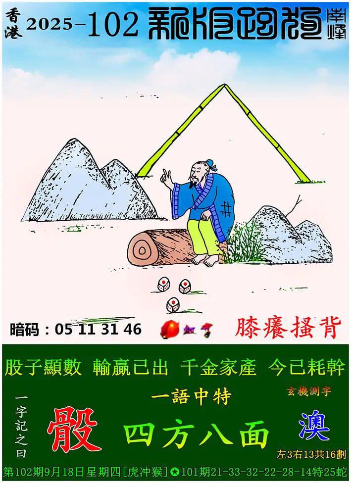 102期新版跑狗一字記之曰:【骰】玄機測字:《澳》 一語中特:四方八面