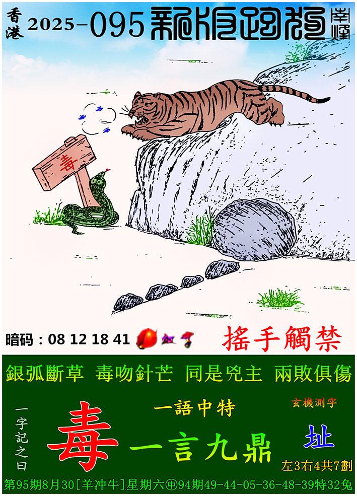 095期新版跑狗一字記之曰:【毒】 玄機測字:《址》 一語中特:一言九鼎