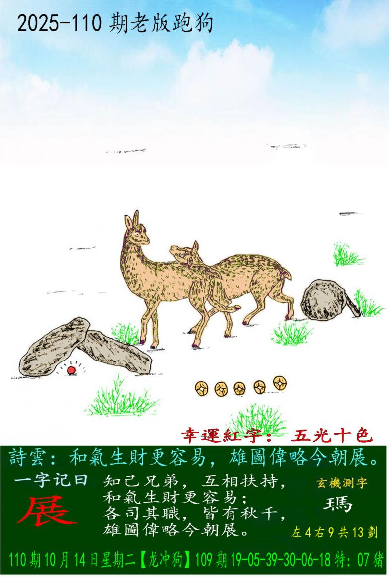 110期老版跑狗一字記之曰:【展】