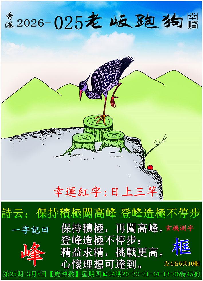 025期老版跑狗一字記之曰:【峰】 詩雲:保持積極闖高峰,登峰造極不停步。