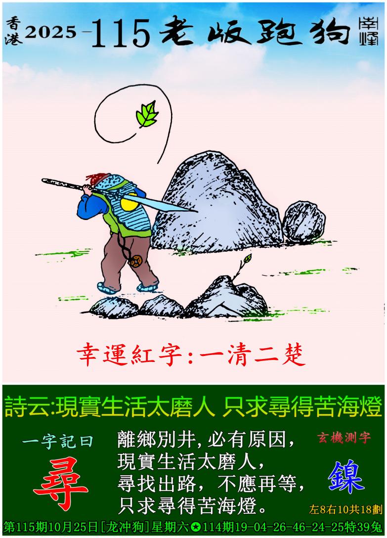 115期老版跑狗一字記之曰:【仁】 詩雲:現實生活太磨人,只求尋得苦海燈。