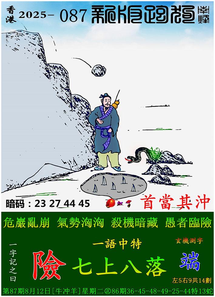 087期新版跑狗一字記之曰:【險】 玄機測字:《端》 一語中特:七上八落
