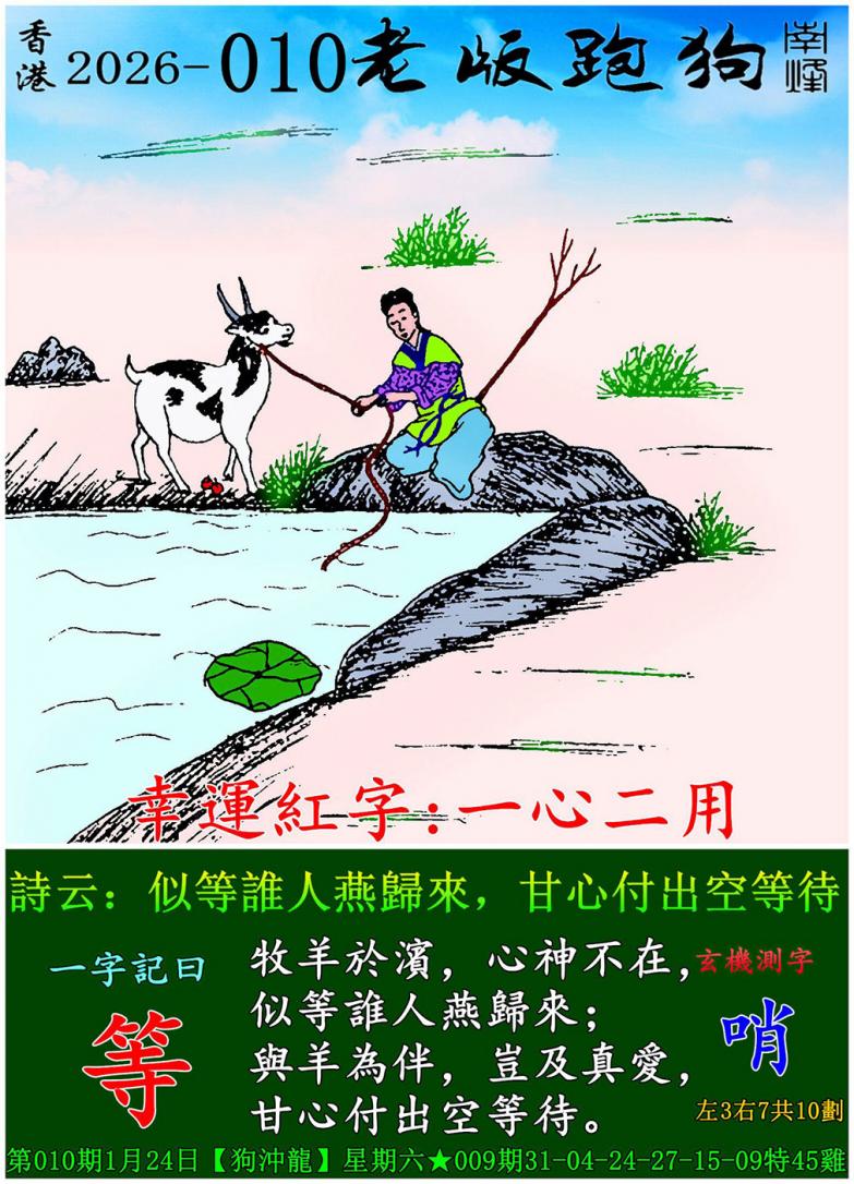 010期老版跑狗一字記之曰:【等】