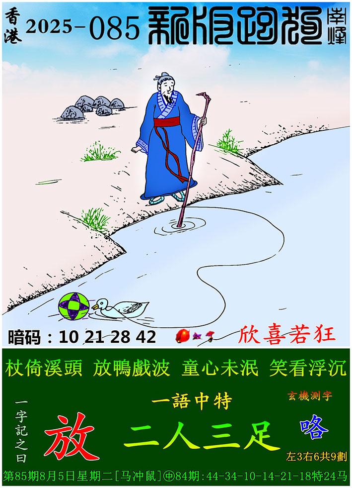 085期新版跑狗一字記之曰:【放】 玄機測字:《咯》 一語中特:二人三只