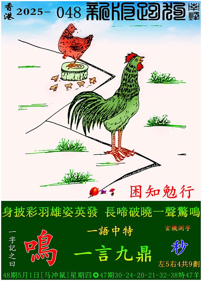 048期新版跑狗一字記之曰:【鳴】 玄機測字:【秒】